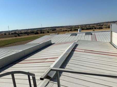 Señalización de lucernarios de un color rojo intenso, que destaque y al mismo tiempo alerte, que la superfie es suelo fragil .